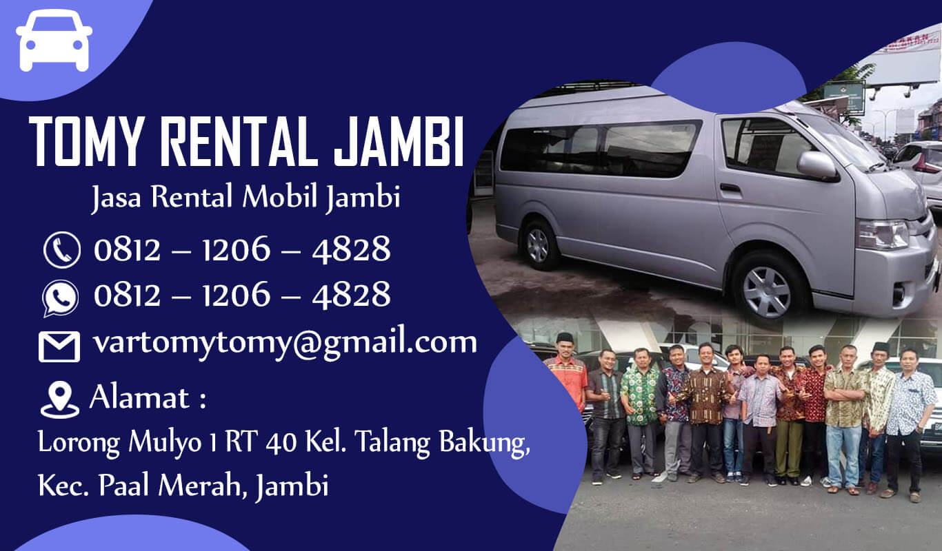 Tomy Rental Jambi merupakan salah satu penyedia jasa rental mobil yang sudah profesional dan terpercaya dengan berbagai armada yang tersedia untuk Anda. Tomy Rental Jambi berlokasi di Lorong Mulyo 1 RT 40 Kel. Talang Bakung, Kec. Paal Merah, Jambi. Tomy Rental Jambi berkomitmen untuk selalu menyediakan pelayanan terbaik untuk para konsumen sehingga kami bisa menjadi salah satu jasa rental mobil terbaik di Jambi dan sekitarnya.